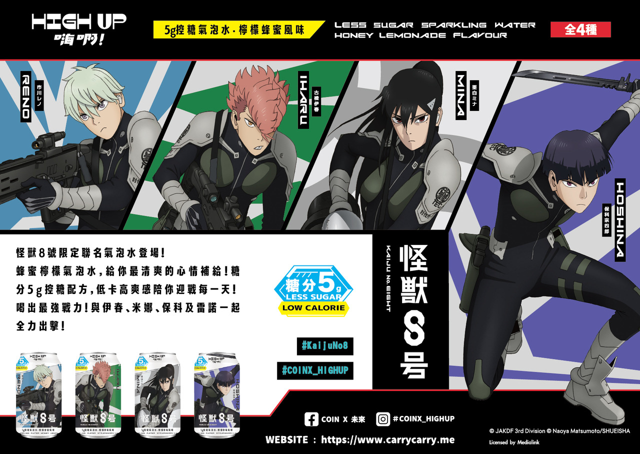 怪獸8號限定聯名氣泡水登場!蜂蜜檸檬氣泡水,給你最清爽的心情補給!