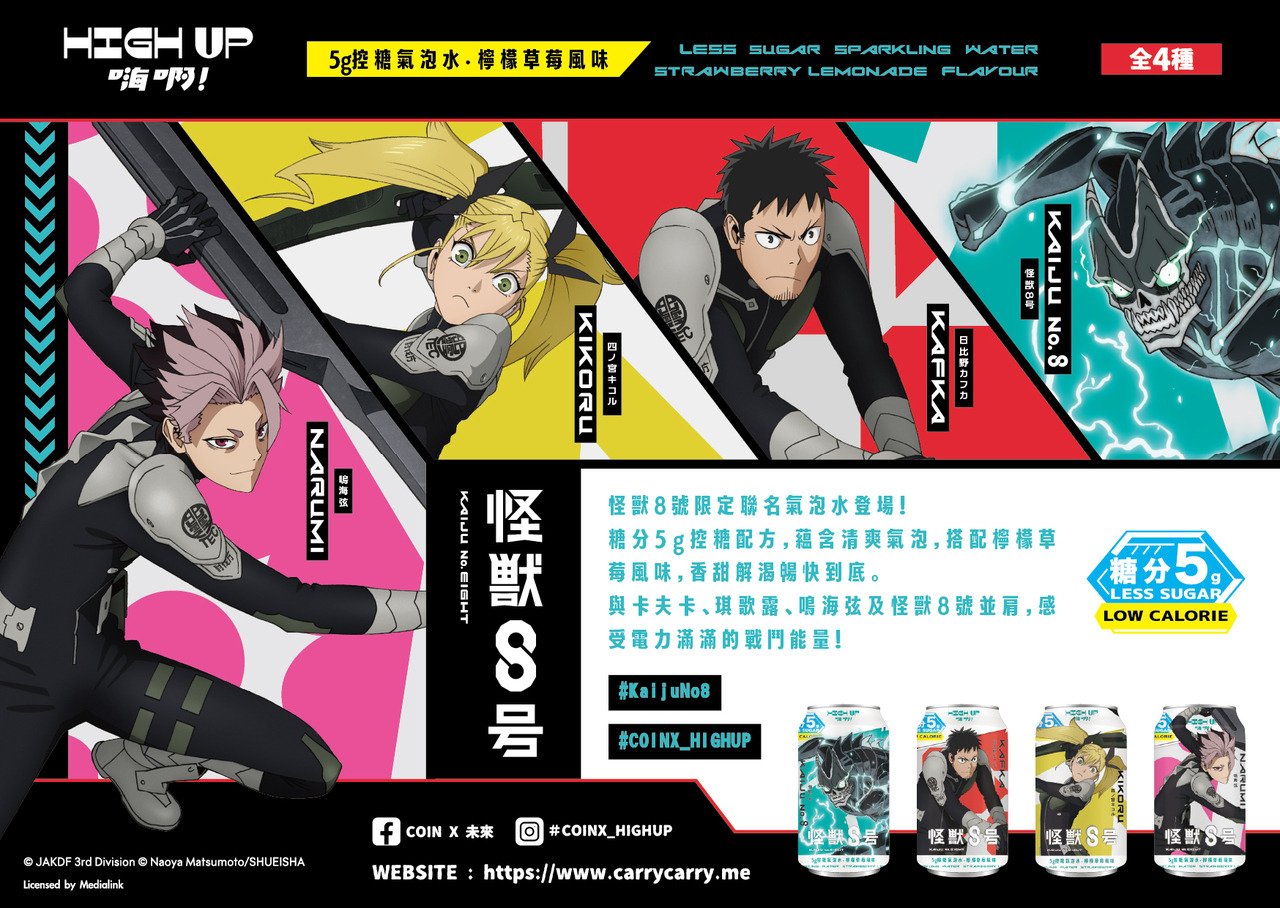 怪獸8號限定聯名氣泡水登場!糖分5g控糖配方~