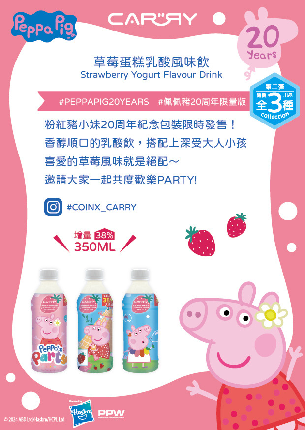 CARRY 乳酸風味飲 ( 草莓蛋糕風味 ) 粉紅豬小妹【24入箱裝】