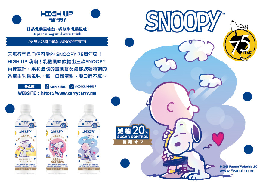 HIGH UP 攜手 SNOOPY 75週年,把這份溫柔放進每一瓶乳酸風味飲裡。
